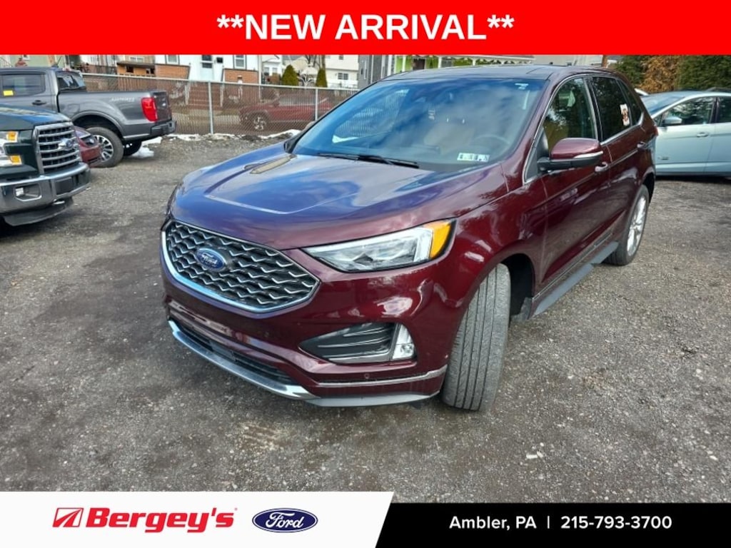 Entering this Edge is simple with the Intelligent Access keyless fob with remote start or the handy SecuriCode Keyless Entry System, built discreetly into the door pillar. Dual heated and cooled 10 way powered seats with driver memory are covered in supple leather as is the heated leather steering wheel. The large 12 SYNC 4 touch screen with Navigation provides a variety of entertainment choices including Apple CarPlay or Android Auto, SiriusXM radio and Bluetooth connectivity as well as a large full color rear camera and wireless charging pad. The 12 speaker Premium Bang and Olufsen Audio System with HD radio is an audiophiles delight.
