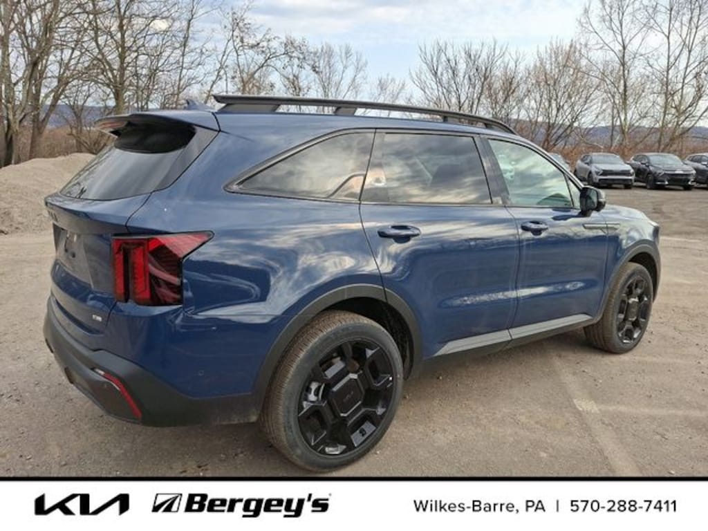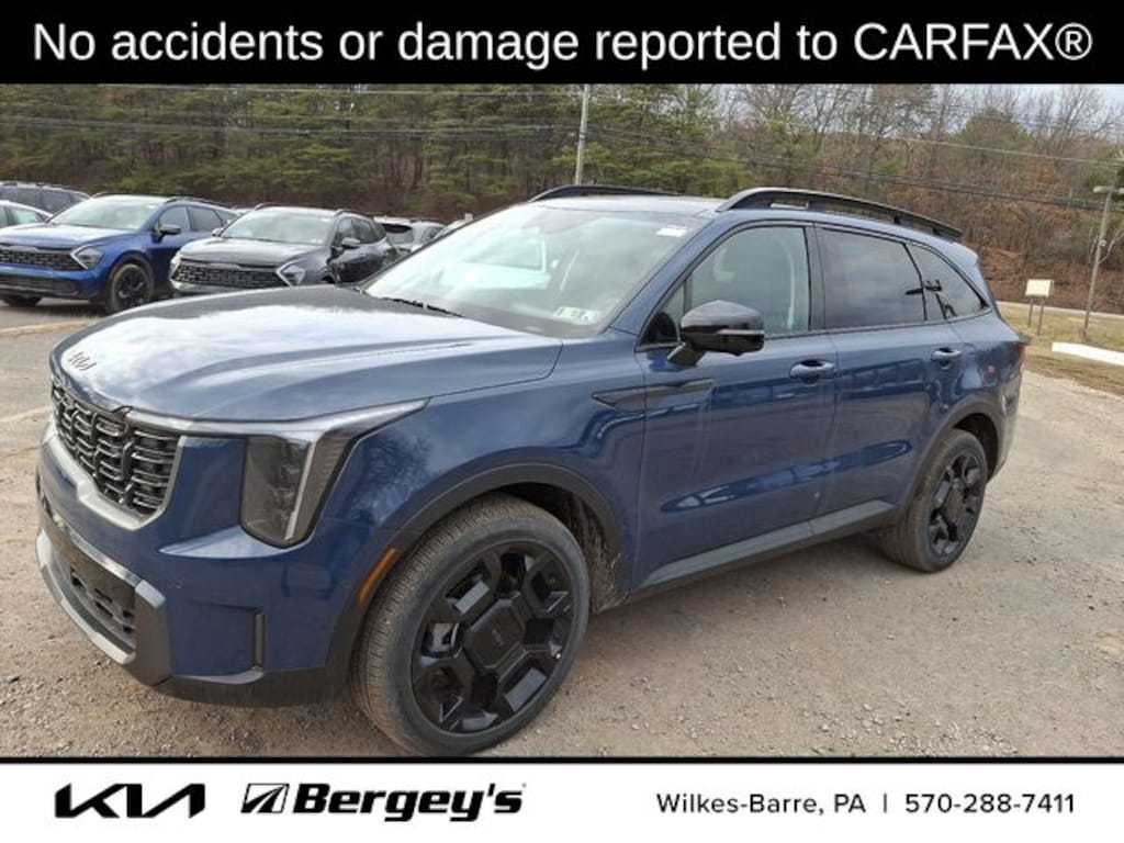 Certified. Midnight Lake Blue 2025 Kia Sorento X-Line SX AWD 8 Speed Dual Clutch 2.5L I4 DGI Turbocharged DOHC 16V LEV3-SULEV30 281hp AWD.