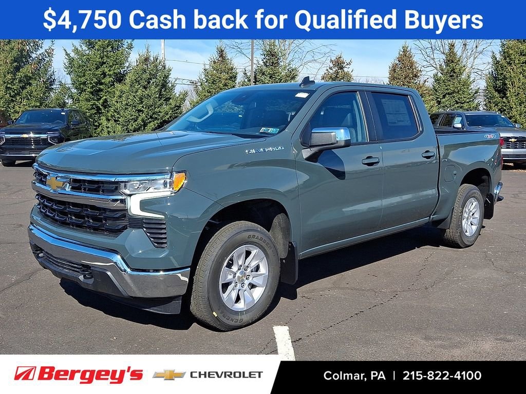 Cypress Gray 2026 Chevrolet Silverado 1500 LT LT1 4WD 10-Speed Automatic EcoTec3 5.3L V8 Price includes: $4250 - Chevrolet Consumer Cash Program. Exp. 04/30/2026 $500 - Chevrolet Bonus Cash. Exp. 04/30/2026