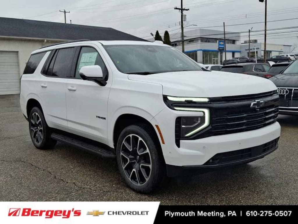 Summit White 2026 Chevrolet Tahoe RST 4WD 10-Speed Automatic with Overdrive EcoTec3 5.3L V8 4WD, Jet Black/Victory Red Leather.