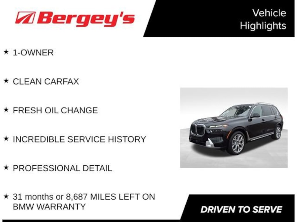 With a clean CARFAX report, a fresh oil change, and an incredible service history, this 2025 BMW X7 xDrive40i is a true gem. Backed by the remaining 31 months or 8,687 miles of the BMW warranty, you can drive with peace of mind, knowing that your investment is protected.