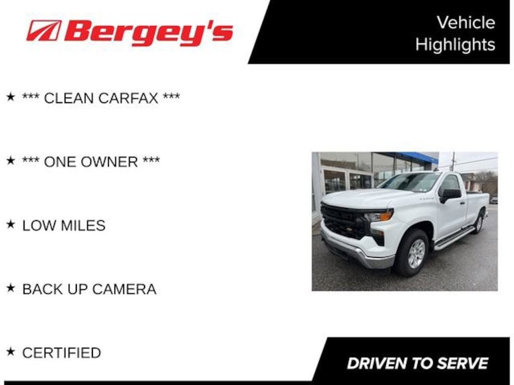 Recent Arrival! *** CLEAN CARFAX ***, *** ONE OWNER ***, LOW MILES, BACK UP CAMERA, CERTIFIED, 10-Speed Automatic, Black Cloth. Certified. Certification Program Details: *6-Month/6,000-Mile Bumper-to-Bumper Limited Warranty*, whichever comes first, in addition to any remaining original factory Bumper-to-Bumper warranty. See participating dealer and warranty booklet for limited warranty eligibility and coverage details, including limitations and exclusions. *Except for non-GM vehicles in the State of California, where coverage will be provided by a vehicle service contract. Priced below KBB Fair Purchase Price! Odometer is 5905 miles below market average!2024 Summit White Chevrolet Silverado 1500 RWD EcoTec3 5.3L V8 10-Speed Automatic
