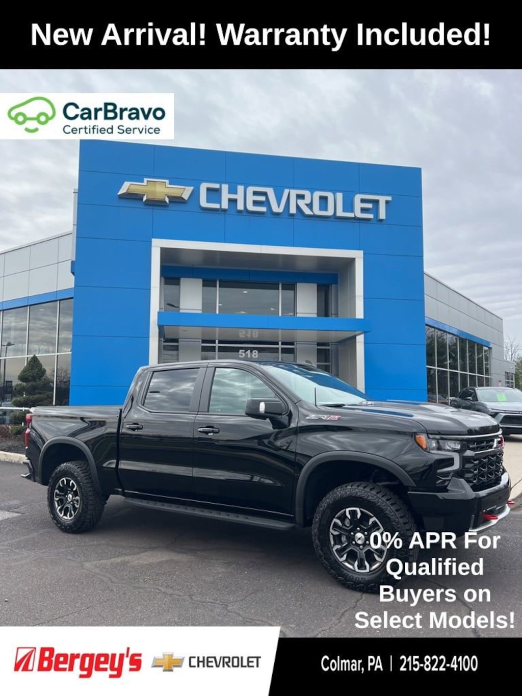 Recent Arrival! Clean CARFAX.CarBravo Limited Bumper-to-Bumper Warranty When you choose a certified used vehicle less than 10 model years old and with less than 100,000 miles, youâll get 6-month/6,000-mile * limited bumper-to-bumper warranty coverage with no deductible. Ownership Benefits: *Courtesy Transportation *24-Hour roadside assistance *1-month trial of Onstar Connected Services or Onstar Guardian app *3-month trial of SiriusXM *Support from one of the largest nationwide service networks *2025 Black Chevrolet Silverado 1500 4WD EcoTec3 6.2L V8 10-Speed Automatic