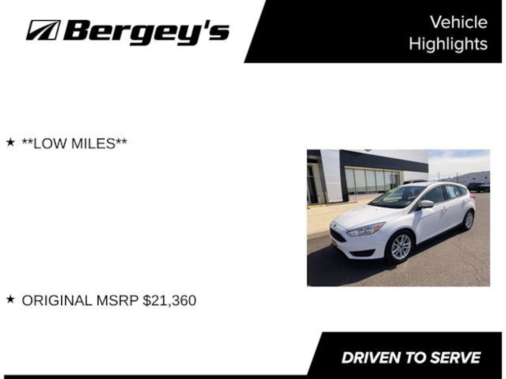 This 2018 Ford Focus SE is a true standout in its class, offering a winning combination of performance, efficiency, and premium features. With its low mileage and exceptional value, this Focus SE is an opportunity you won't want to miss. Visit our showroom today and experience the difference for yourself. We're confident you'll be impressed by this exceptional vehicle and the exceptional service our team provides.