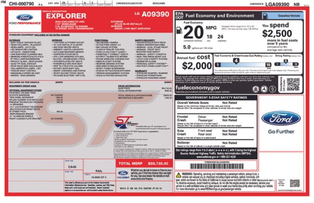 Blue 2020 Ford Explorer ST 4WD 10-Speed Automatic 3.0L EcoBoost V6 1-OWNER, CLEAN CARFAX, FRESH OIL CHANGE, INCREDIBLE SERVICE HISTORY, LOCALLY OWNED, NEW PA INSPECTION, PROFESSIONAL DETAIL, 4WD.