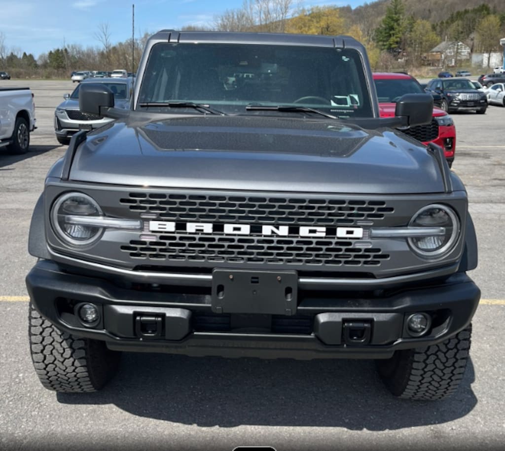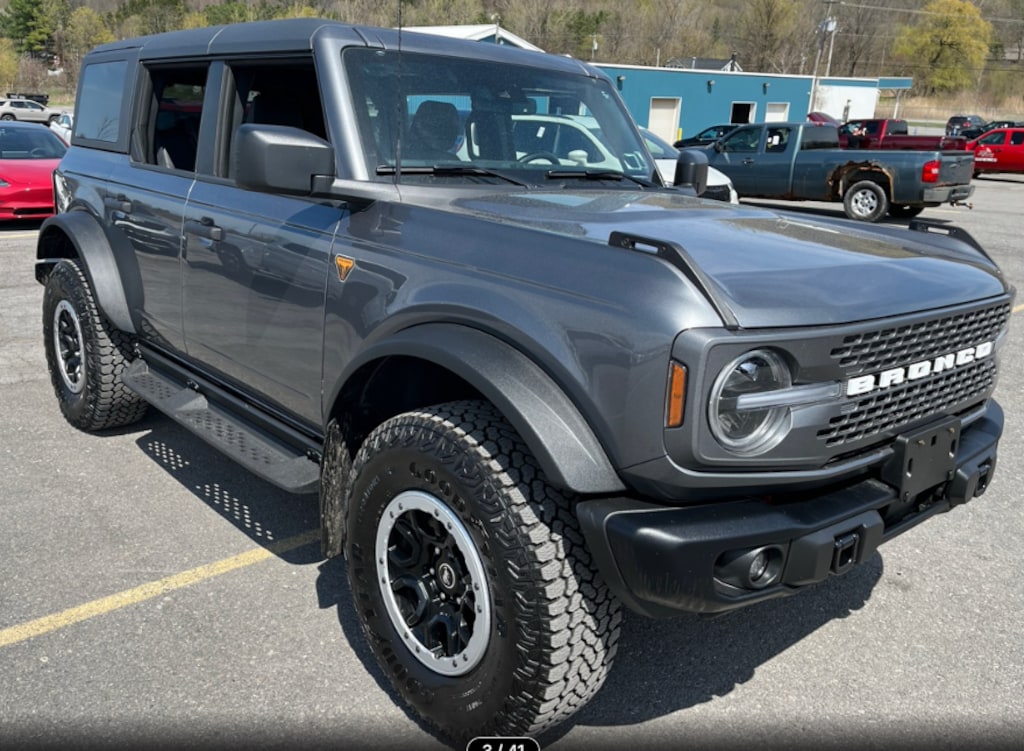Rugged off-road terrain has met its match in this Ultra-Low Mileage Certified Bronco Badlands Hardtop Sasquatch. This nearly new One Owner Bronco has a clean CarFax with only 3,167 miles Why Buy New? The powerful 2.7L EcoBoost V6 engine produces 330 HP and 415 lb-ft of torque, and is mated to a 10 speed automatic transmission. When going off road, the Sasquatch Package with its 17 Black High Gloss-Painted Beadlock Wheels with Alloy Rims, 4.7 Final Drive Ratio with Electronic-locking Front and Rear Axle, High Clearance Suspension and High Clearance Fender Flares tame the toughest trails, while the Terrain Management System with G.O.A.T Modes enhances the 4X4 capabilities.