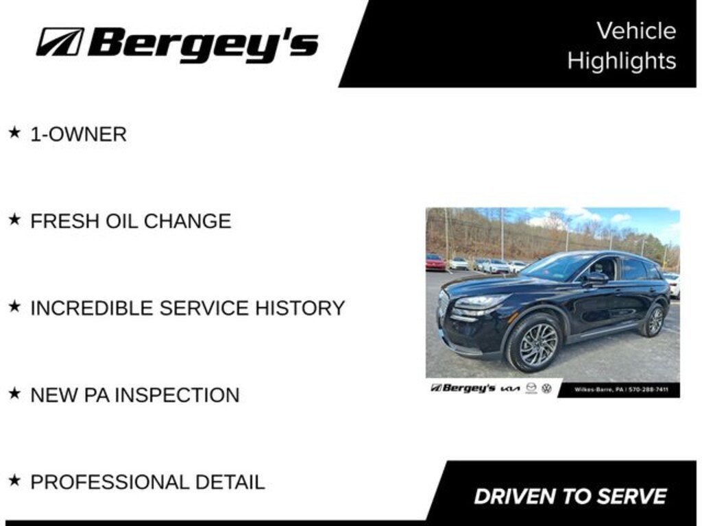 Discover the exceptional 2022 Lincoln Corsair Standard, a premium SUV that blends sophisticated style, advanced technology, and uncompromising performance. This meticulously maintained one-owner vehicle boasts a fresh oil change, an impeccable service history, and a recent Pennsylvania inspection, ensuring it's ready to provide you with a seamless and enjoyable driving experience.