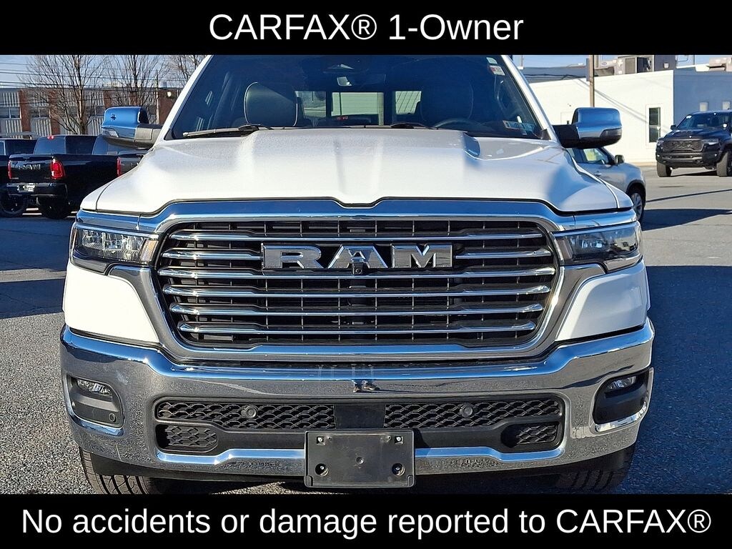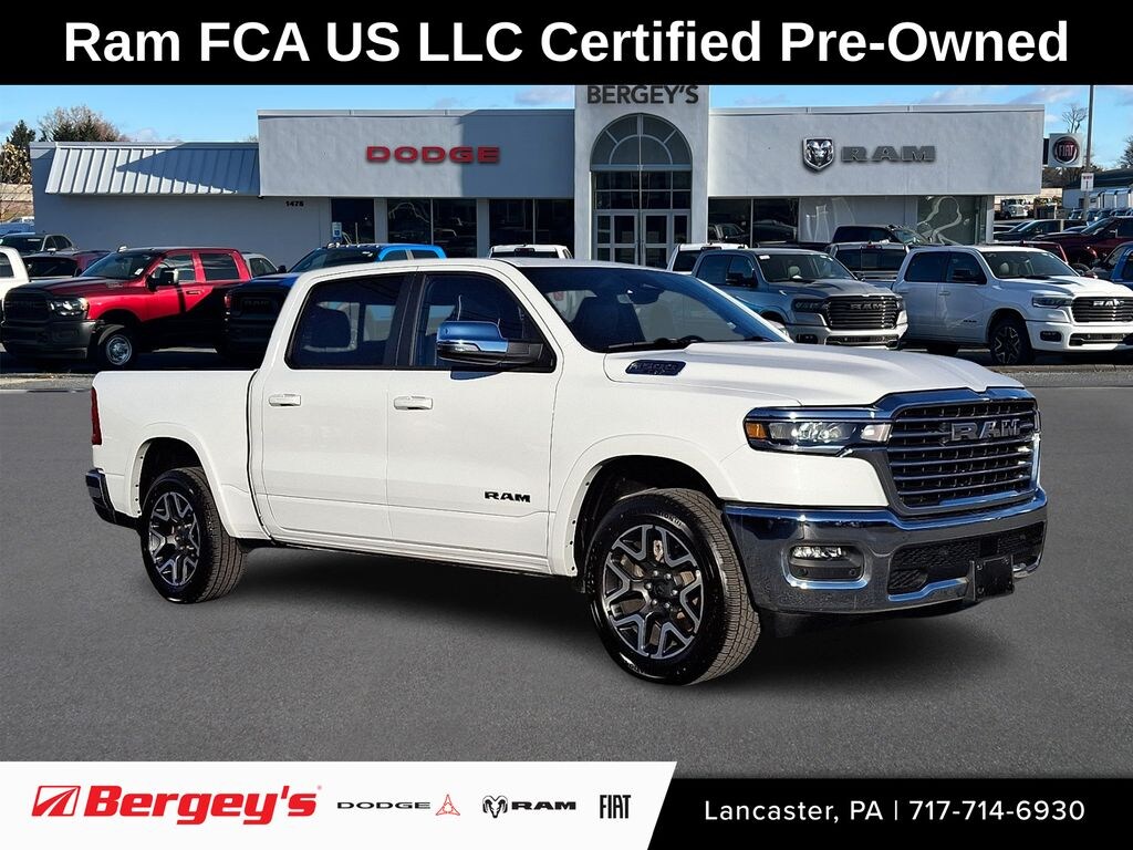 Certified. Bright White Clearcoat 4D Crew Cab CARFAX One-Owner. 2025 Ram 17/24 City/Highway MPG 1500 Laramie 4WD 8-Speed Automatic 3.0L I6 1-OWNER, CERTIFIED, CLEAN CARFAX, FRESH OIL CHANGE, NEW PA INSPECTION, PROFESSIONAL DETAIL, #1 Seat Foam Cushion, 3 Rear Seat Head Restraints, 4 Way Front Headrests, Bucket Seats, Center Console Parts Module, Driver Seat Memory, Front Seat Back Map Pockets, Full Length Upgraded Floor Console, Heated Front Seats, Heated front seats, Heated rear seats, Heated Second Row Seats, Heated Steering Wheel, Laramie Level 1 Equipment Group, Leather Trimmed Bucket Seats, Power 2-Way Driver Lumbar Adjust, Power 2-Way Passenger Lumbar Adjust, Power Adjust 8-Way Driver Seat, Power Adjust 8-Way Front Passenger Seat, Power driver seat, Quick Order Package 21H Laramie, Radio: Uconnect 5 Nav w/12.0" Display, Rain Sensitive Windshield Wipers, Rear 60/40 Folding Split Recline Seat, Remote keyless entry, Remote Tailgate Release, Steering wheel mounted audio controls, Ventilated Front Seats, Wheels: 20" x 9" Premium Paint/Polish.